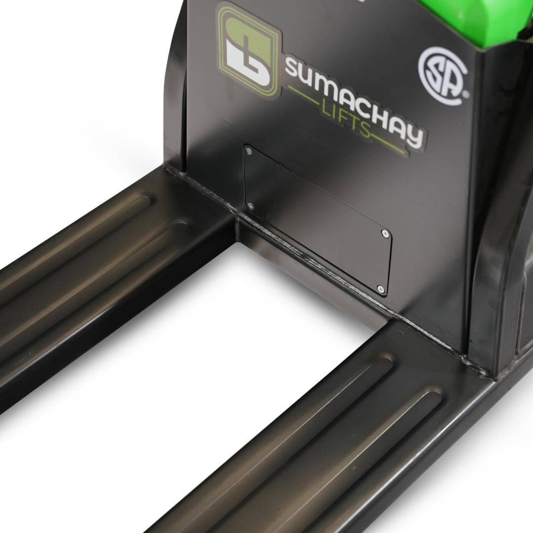 Maximize efficiency and power up your warehouse operations with Sumachay's SESR15-N electric pallet jack, specifically designed for narrow fork applications. Assembled in Canada, this powerhouse boasts a hefty 3300 lb capacity and offers a choice of standard 20Ah, or long-range 40Ah lithium-ion batteries to suit your needs.